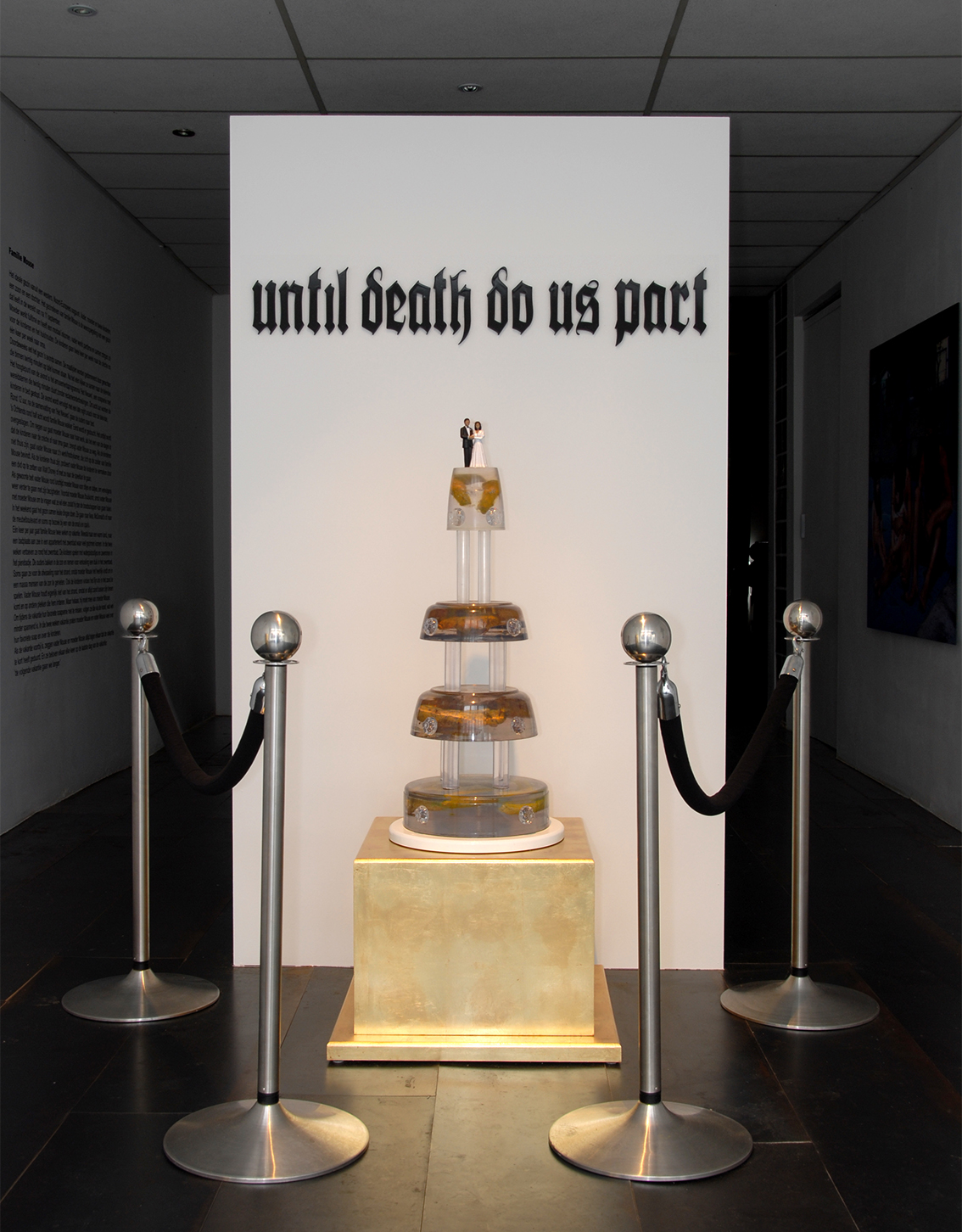 My work deals with the relationship between the consumption oriented infrastructures in modern western society and the human behaviour that these infrastructures produce. My work in itself is a product of this relationship. Especially the way in which private life becomes public and vice versa holds a central role in my work; which is the way in which modern media make intimacy the public’s entertainment and an obscene mirror of excess in consumption. By showing the excess of the excess in my work I force new relationships to become the products that we produce and the way in which we are a product of these products. Do we eventually -in an ultimate fest of western decadence- consume ourselves? Is this final deed of radical overconsumption a way of self-destruction or an excessive celebration in the immaculate space of hyper sensation that seems to have replaced our public space? What do words such as ‘intimacy’ still mean in this excess?